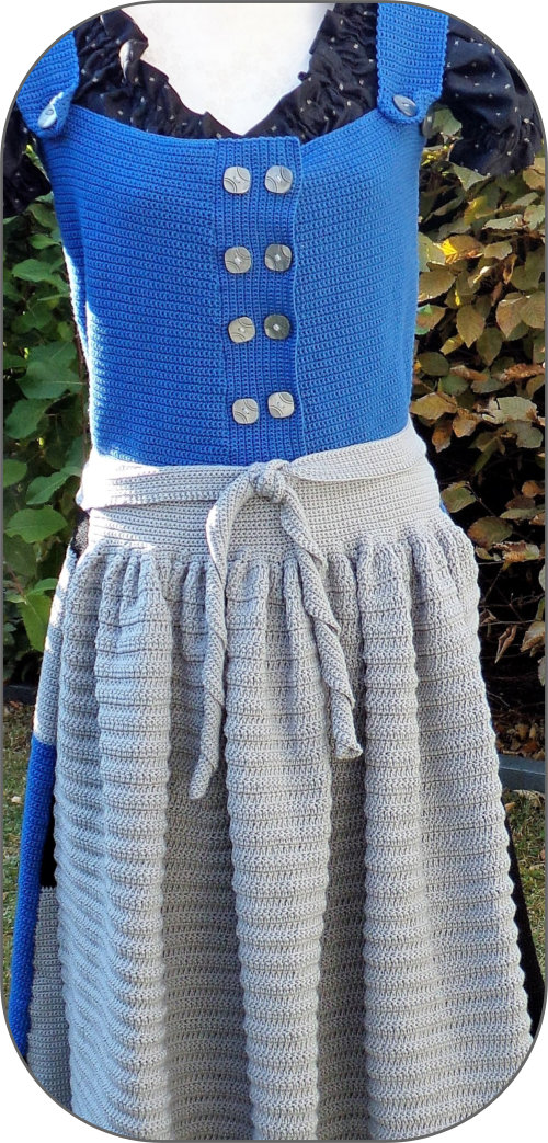 Handgehäkeltes Unikat in kobaltblau, grau, schwarzDirndl im „Mondrian Style“,Kunst und Inspiration vereint.Dieses edle und einzigartige Dirndl wurde inÖsterreich, in vielen Arbeitsstunden, mit vielInspiration, Kreativität und Herz handgefertigt.Es wurde mit Merino Wolle, einer 100 %Schurwolle gehäkelt. Das Material passt sichje nach Jahreszeit den Temperaturen an. ImFrühling/Sommer kühlt es ab und im Herbst/Winter wärmt es.Ein echtes Wohlfühlerlebnis.Ich bestätige die echte Handarbeit und Einzigartigkeitmeiner Dirndlkleider mit einem Zertifikat.Die abgebildete Bluse und Accessoires wurden nur für fotografische Zwecke verwendet.