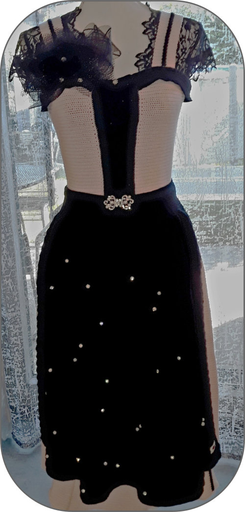Handgehäkeltes Unikat in puderrosa, schwarzDirndlkleid im Retro und Vintage Stil.Dieses edle und einzigartige Dirndl wurde inÖsterreich, in vielen Arbeitsstunden, mit vielInspiration, Kreativität und Herz handgefertigt.Es wurde mit Merino Wolle, einer 100 %Schurwolle gehäkelt. Das Material passt sichje nach Jahreszeit den Temperaturen an. ImFrühling/Sommer kühlt es ab und im Herbst/Winter wärmt es.Ein echtes Wohlfühlerlebnis.Ich bestätige die echte Handarbeit und Einzigartigkeitmeiner Dirndlkleider mit einem Zertifikat.Die abgebildete Bluse und Accessoires wurden nur für fotografische Zwecke verwendet.